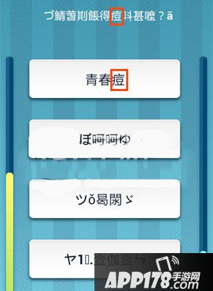 这一题,题目中我们能快速认出的是“痘”字,下面的四个答案中只有第一个答案中也有“痘”。接下来再看关键字:qing、长痘、什么,推测一下题目的大致意思是“青春期长得痘是什么啊?”答案中的“青春”两个字也对应上了,可以肯定这正是本题的正确答案。