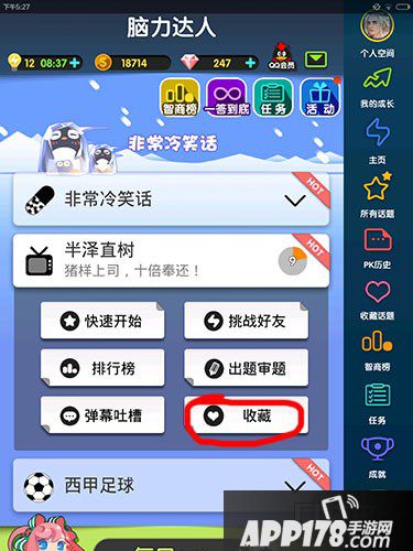 最近有很多小伙伴在问,在脑力达人中,收藏了一个话题要怎么才能取消收藏。其实呢,这非常简单,下面小编就用图解的形式来解答一下这个问题。