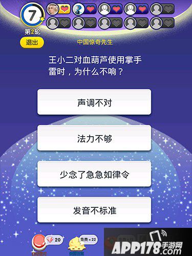 然后集齐4个人开始召唤题目了。从头顶的图标来看。最多应该可以10人一起。没有一点点防备,开始答题。答题是每个小伙伴同时开始的,题目也一样。红色的心心是血量,答错一题扣一点。一共三次机会,答错三次就会出局。