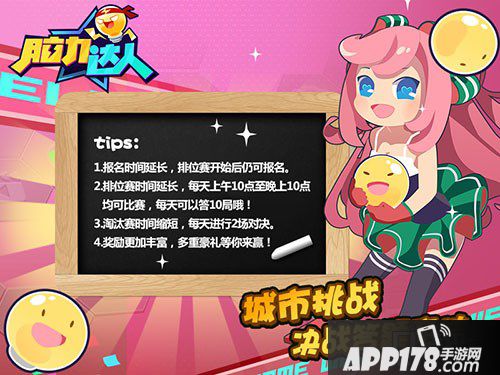 报名时间:城市赛将于2015年7月8日到7月10日开启报名环节,值得一提的是,本次城市挑战赛报名可延长至排位赛结束前,让所有想要参赛的脑力怪才们都能加入这场竞技,展现才华!