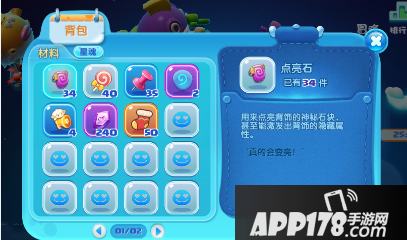 打开背包,就能看到你所获得的所有道具。点击道具,即可查看道具说明和剩余数量。