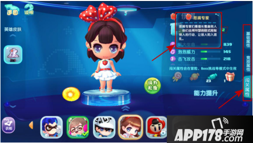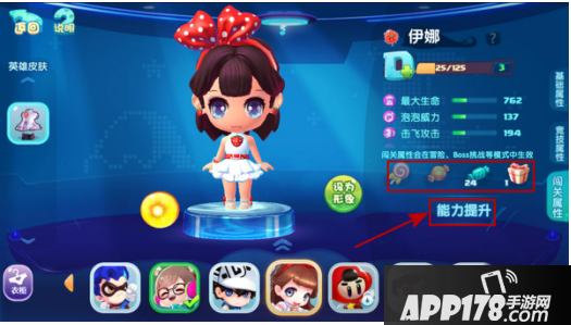在【闯关属性】说明栏中,点击下方的【能力提升】按钮,则会通过消耗【英雄糖果】来提升你的能力哦~