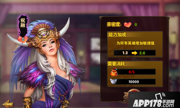 小编很喜欢游戏里面的祝融,因为本人喜欢异域风情的美女,刚刚一得到祝融就po给大家。和她缠绵需要消耗香囊,增加亲密度,然后就可为所有英雄增加敏捷值,美女我来和你缠绵啦!