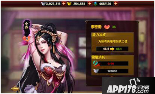 美人系统:以三国时代为背景,游戏中添加了更为丰富美人养成玩法,玩家可以搜集三国时期的女性角色,和她培养感情,随着培养亲密度的提高,对所有武将的能力都有加成功效。