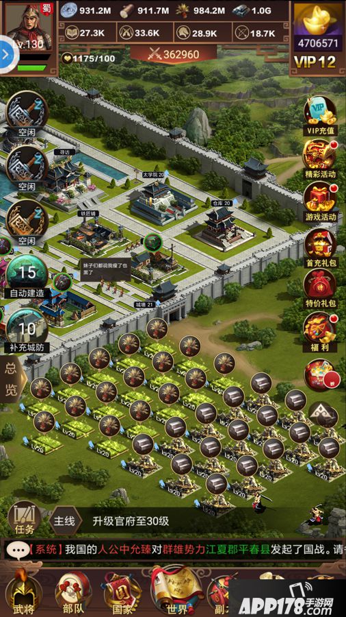 3.每隔1小时,主公可前往官府进行一次资源征收,未收取次数达到12次时,资源建筑将不再继续生产资源。