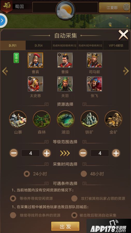 4.武将的品质越高,可采集资源的时间越长。