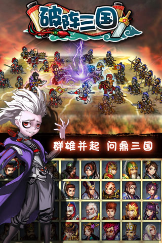 破阵三国是一款以三国为背景的Q版策略类战争手游。游戏中玩家扮演一位纵横三国的主公,率领手下名将,征战沙场赢取天下。其剧情忠实于原著又不乏诙谐幽默,奇袭乌巢、怒战长坂、火烧赤壁等经典战役场景被一一还原。独特的战斗操作方式亦繁亦简,新意的玩法给你带来无以伦比的游戏体验,该游戏是一款集自主经营、武将养成、剧情推图、社交互动、热血PK于一体的手机网游作品,是一款非常不错的手游。