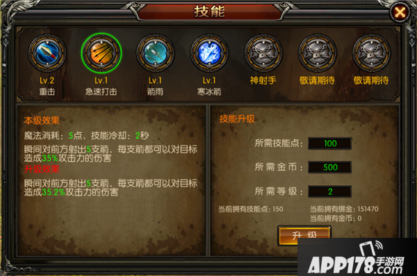 急速打击:瞬间向前方射出5支箭,每支箭造成一定攻击力的伤害
