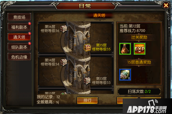 最挑战能力的pve玩法,每5层会获得额外的通关奖励,可以使用放风筝的技巧通过较有难度的关卡,千万不要忘记每天的2次扫荡副本次数!