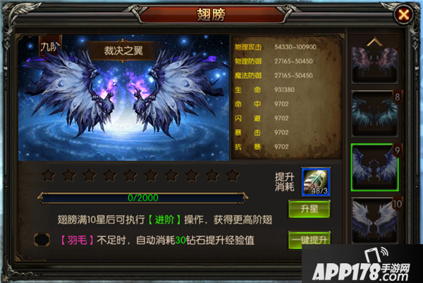 《奇迹无双》中有很多有特点的系统,翅膀可以说是游戏的特色系统了。