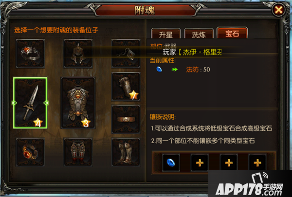 宝石系统比较简单,使用武器进行宝石镶嵌,可以通过系统合成功能,合成更高级的宝石,但是要注意,同一部位无法镶嵌相同的宝石。