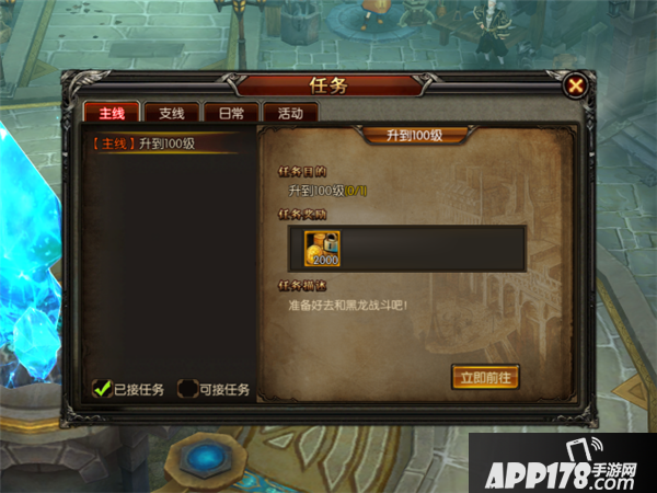 任务:任务界面可查看当前内容,包括主线、直线、日常、活动。这些都是每天丰富经验的保证。