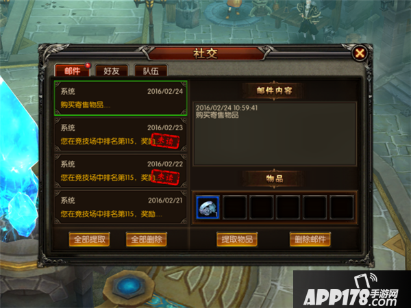 邮件:界面可查看系统或gm所发来的邮件内容