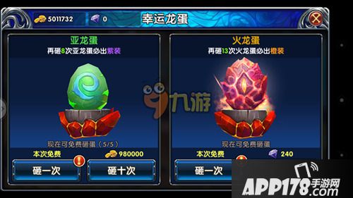 龙蛋玩法是快速获得装备和材料的方式,系统每隔一段时间会赠送一次免费机会,当金币有富足的时候,可以来这里尽情砸蛋。
