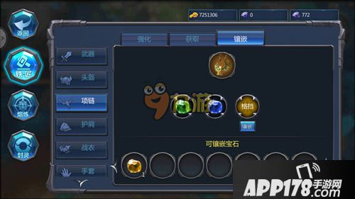 【镶嵌】需要玩家等级达到40级才开放。镶嵌主要是指宝石镶嵌功能,通过为装备镶嵌对应种类的宝石,提升人物战斗力。宝石可以随时卸下镶嵌,并且,更换装备时宝石会自动转移到新装备上,无需更换操作。