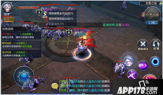 循环任务比较简单,就是击杀一定数量的指定怪物,这里有个小窍门,就是在完成任务的时候与同一地图同一条线的玩家一起组队,其他玩家击杀怪物的数量同样也会记在你的怪物击杀数上,这样完成任务的速度就会大大加快。每日8个任务也很容易完成,只要参与战神之路、竞技场、1v1排位赛等玩法达到一定次数,即可获得经验