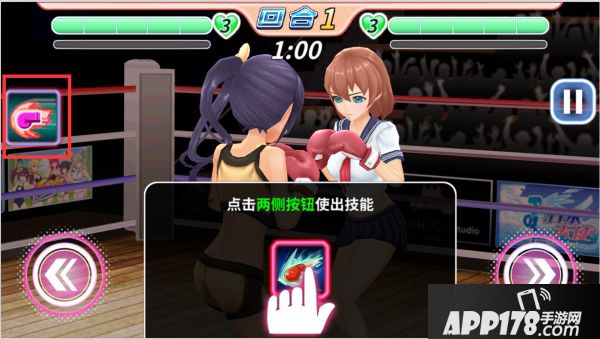 技能:点击两侧按钮就是那个拳头的按钮,使出大招技能。
