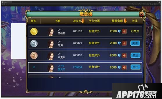 进入悬赏的方式十分简单:在游戏上方列表当中选择悬赏榜即可。悬赏任务属于全天开放的活动之一,只有被悬赏了的玩家才会出现在悬赏榜上,被悬赏的人一旦被玩家击杀,则立刻从榜上消失。同一玩家可以被不同的人悬赏,金额为所有人悬赏金额总和,击杀悬赏榜上的人会通过邮件接收到完成悬赏任务的奖励。