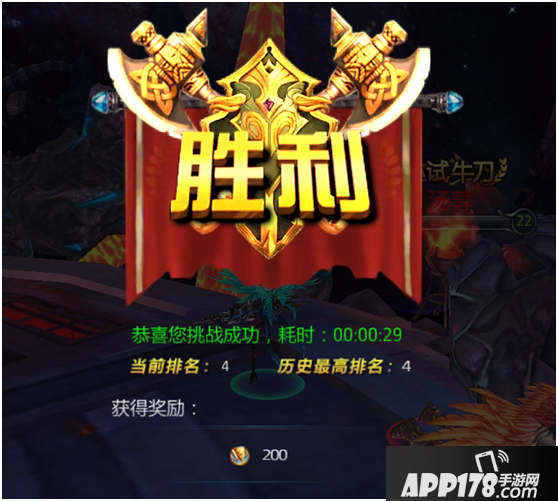 过程没办法截图,所以只看结果就行了,胜利之后获得奖励,奖励是200积分。