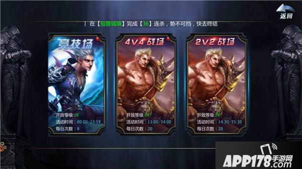 PVP系统除了传统竞技场,还有4V4、2V2、阵营战场、大逃杀混战等模式,全都是实时匹配、即时战斗。可惜的是限时开放,如果玩家想随时随地激情一把,除了安全区之外的大片地图都允许开红。