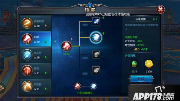 比如说弓手的“陷阱”,初始效果只是放置陷阱造成伤害,分支效果则是二段攻击“冻结”,以及三个被动效果“减速”、“减CD”及“附加冰伤害”。