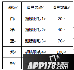 翅膀分为5个品级,每件翅膀的名称颜色和副属性条数有区别