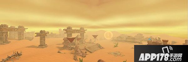炙热的沙漠,黄沙弥漫,断壁残垣,传说中诸神陨落的地方。