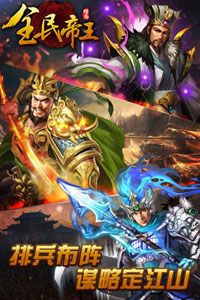 全民帝王是一款以三国时期董卓叛乱,献帝在佩儿帮助下外逃展开故事剧情来展开的。游戏内涵盖了卡牌RPG的养成玩法,又加入了SLG游戏中的策略战斗系统,集合100多个武将、独有的华丽技能、多种任何搭配阵型、无限制语音聊天、军团攻城战等您来挑战!在游戏中你是一位王者,管理着朝中大小事务,包括军队部署,出兵阵列。布阵的时候还需要你聪慧的大脑多从几个角度思考哦!