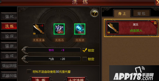 每件装备在初始生成时都会随机附带0-2条的洗炼属性,使用洗炼功能时可以让装备随机获得1-2条洗炼属性,每次洗炼都需要消耗1颗洗炼石。当你洗出一条满意的属性时,可以选择锁定功能进行洗炼,锁定洗炼时除了消耗1颗洗炼石,还需要1把洗炼锁。这里告诉大家一个秘密,使用锁定功能进行洗炼时,必定获得2条洗炼属性。