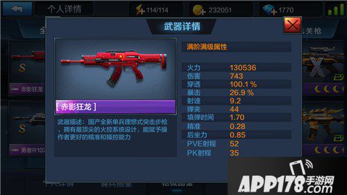 赤影狂龙作为现阶段最好的突击步枪,攻击力高,弹夹数也不低。作为新开启的唯一的套装组件之一,其性能在PVP里已经可以替代机关枪的位置了。
