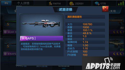 长弓APS是作为目前最好的单发狙击枪,也是PVP里用的最多的一把狙击枪。攻击高,稳定性也好。无论是跑狙流还是起蹲流可以说是必备的一把枪。