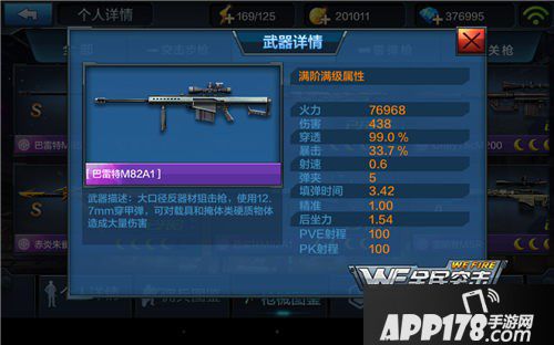 从数据上可以看出巴雷特M82A1主要依靠40%的高额附加伤害,这也正是它可以用于PVE的原因,作为一款非土豪枪械,绝大部分玩家都可以考虑入手,预测未来一年内价值不会变低。