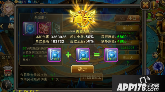 玩家通过主线任务达到一定等级后,即会开启勇者历练活动,每天拥有3次挑战机会。