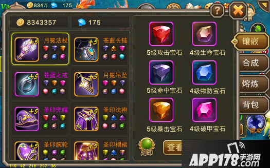 39级左右会开放宝石跟夺宝两个系统,前者在装备上镶嵌宝石从而获得大量战力,后者通过夺取别人的宝石碎片合成宝石,是宝石的主要产出途径。每件装备一开始都只开放三个孔镶嵌宝石,前期只要拿到宝石什么都不用管全镶嵌在宝石孔里,那么战力一下子会提高很多。等开放的宝石孔全满了,有条件的玩家可以去开孔,每件装备最多有6个宝石孔。而暂时不想开孔的玩家,可以通过合成、熔炼这两种途径获得更高级的宝石,替换原本镶嵌在装备上的宝石,越高级的宝石战力加得越多,所以你懂得!另外悄悄告诉你一个秘密,每件装备镶嵌3块5级宝石有惊喜哦!