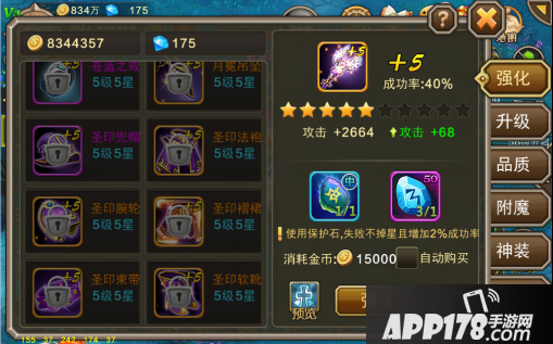 40级后,将会开启三种玩法,分别是异域历险,狩魔之战和精英BOSS,这三种玩法都会产出大量的装备材料。其中强化石用于装备强化,强化+1到+3使用初级强化石,强化+4到+6使用中级强化石,强化+7到+9使用高级强化石。一般活动和副本多产出低级强化石,各位可以通过合成功能得到更高级的强化石。建议40级以后,首先努力收集强化石,让全身装备强化+4,战力自然就上去了。值得注意的是,强化+1到+3成功率较高,+3升+4的时候成功率会降低到50%,这时候使用保护石可以保证强化过程中不掉星哦!
