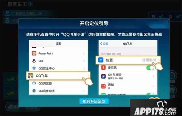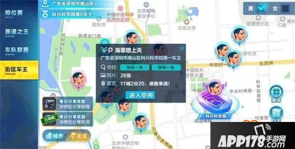 想成为街区车王,当然要先找好属于自己的“地盘”,车手们可以在自己的手机设置中,打开GPS定位功能,确认自己的街区。街区车王中将以各个城市街区的地标为赛场,车手们在赛场附近,即可选择该赛场,并挑战附近的车手。