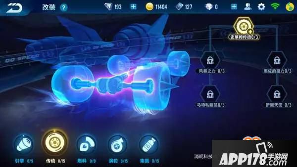 接下来就是对传动系统改装了,传动系统可以增强赛车的基础动力,也是非常重要的,不过针尖的本身基础动力就较为不错,所以我们放在后面进行改装。