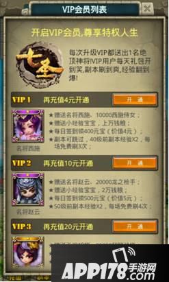 而且,vip奖励的将领都是同级别中属性较高的,各级别vip对应的将领如下表: