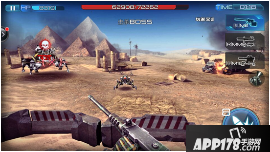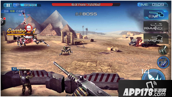 玩家打到1-9后装备和佣兵已经部分成型了,前几波小怪依然轻松杀死后BOSS步入眼前,像往常一样打击BOSS,当BOSS出现弱点后一定要不停的瞄准打击BOSS出现的弱点,中断大BOSS释放的技能,否则会像“图2”中一样像玩家飞来很多导弹,导弹炸在身上的滋味可真的不好受噢,所以玩家要立即转换目标打爆飞来的导弹,然后进行BOSS击杀。