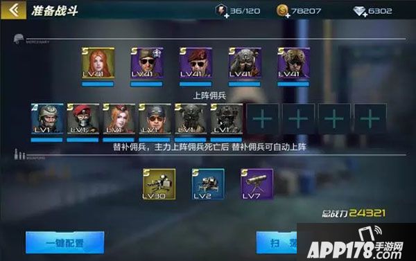 点击开始战斗进入上阵佣兵和武器界面,选择自己最强的佣兵出战和培养最高的武器进行装备,才能更容易的通过每个BOSS关卡。同时佣兵可以上阵15名,当主力佣兵死亡后,替补佣兵会自动代替上阵。