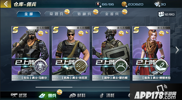 佣兵分为3大兵种:常规兵、特种兵、支援兵。