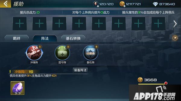 2.在援兵里面装备阵法,才可以在资源争夺战中生效阵法。