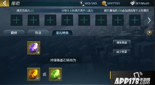 具体的条件为,每3块固守阵的基石可兑换2块冲锋阵基石或者2块磐石阵的基石。(每次兑换最少为3块石头哦~)