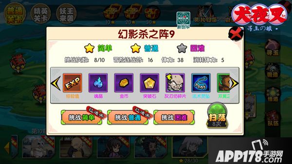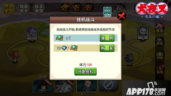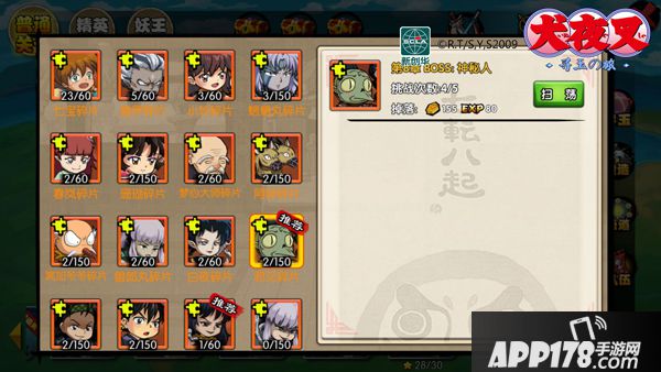 犬夜叉副本分为两个部分,普通的“战”旗即是普通的关卡,有角色头像那种就是boss关卡,boss关卡才有剧情哟。难度更大的同时也会掉落更为丰厚的道具,包括强力角色的碎片,性价比十分高,当然每天挑战的次数也是有限制的,因此无论是原著的爱好者还是出于奖励的目的,各位玩家都不要放过哦,具体怎么刷,看官请往下看下文的碎片挂机部分。