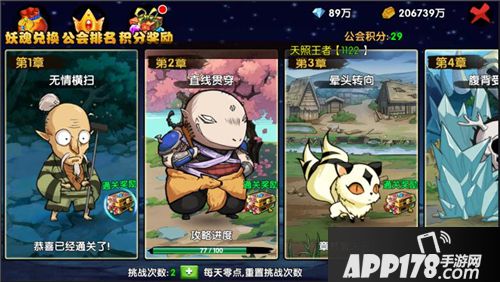 在手游《犬夜叉-寻玉之旅》中,想要挑战公会副本,你只需要在主界面点击公会进入到公会界面中,就可以看到右上角的公会活动功能。点击进入公会副本挑战之后,你会在公会副本的界面详细了解当前的进度等;除此之外,你还可以在公会副本界面上方看到众多按钮:妖魂兑换、公会排名、积分奖励,以及下方可以看到剩余挑战的次数,每日初始天战2次,可以再获得1次,每天0点刷新。你可以在公会副本挑战排行榜上看到你的玩家排行和公会排行哦!