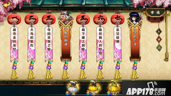 可以看到,普通章节有8个关卡,其中很明显的就是最终的BOSS就是我们的桔梗,不过天了噜,李陶奶奶不是给桔梗招魂了嘛,怎么会出现残念的亡灵呢???难道李陶是先杀了桔梗,然后再复活,呵呵呵呵,只看到爆眼球的奶奶强力抢镜!反正作为一个反派,李陶不管是从形象上还是内涵上都很彻底~另外,顺便说下,有没有看到关卡下的三个珠子,反正给老师我点个赞又不怕我骄傲~