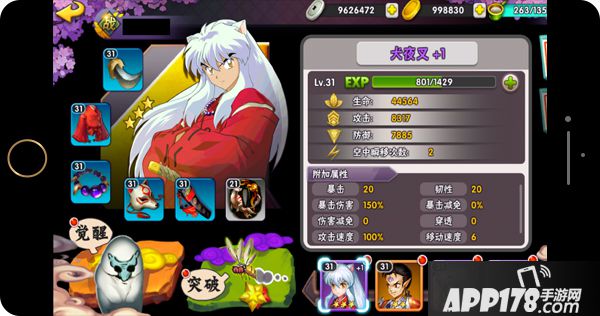 犬夜叉这个角色属性上具有高攻高防的特点,作为一个近战职业,双高的属性给了犬夜叉更多的发挥余地。