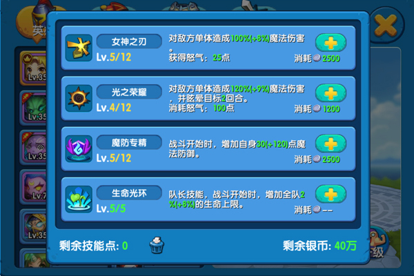 当获得心仪已久的英雄后,如何将其培养成为合格的战斗力也是每个玩家必经的道路。《任性英雄》中英雄通过消耗金币提升自身等级,每提升2级获得一点技能点。