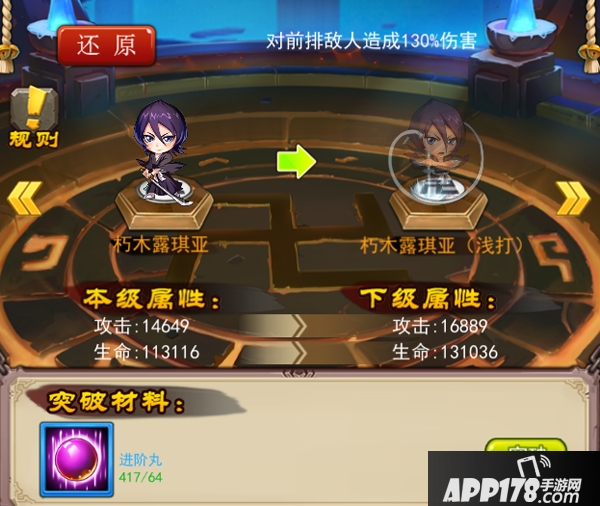 这整个进化过程中,玩家需要让露琪亚进阶到+10,然后配合突破材料才能让他进阶到浅打境界!