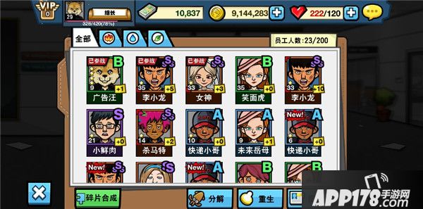 不同品质的职员初始属性强度不同,排序如下<A<S<SS<SSS。